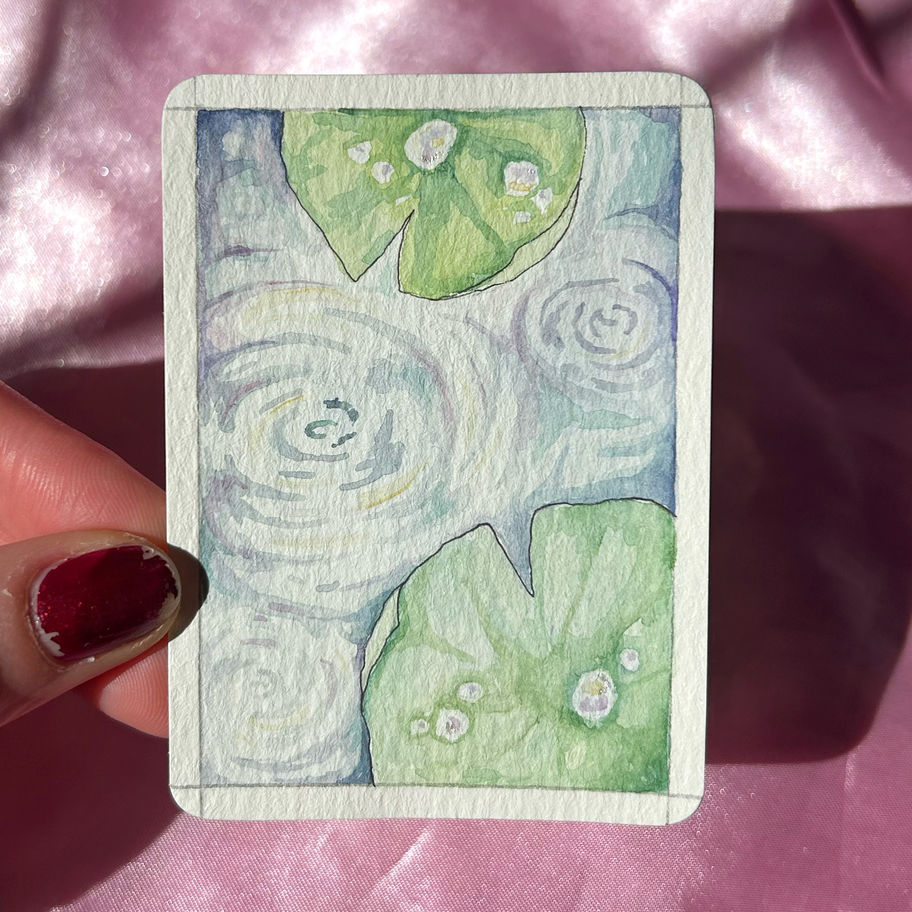 This mini art print focuses on the magic that rain causes when it lands on a puddle. It’s so mundane but makes the sweetest music and patterns, so I wanted to paint a lil print to dedicate a moment to those mini moments.